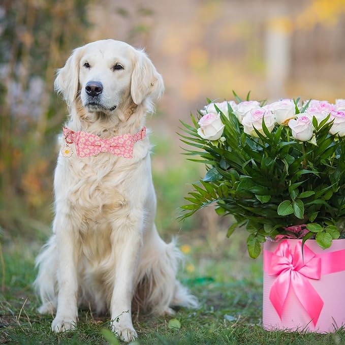 - Floral Dog Collar with Bowtie: Designed with pink color, white daisy pattern, make your dog attractive when wearing. Flower dog bow is attached to collar using an elastic strap, it is detachable. Adorable daisy charm make this collar more fashion.
