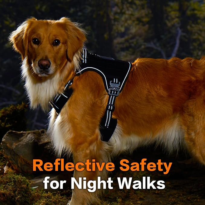 - Stand Out Day & Night + Anti-Lost Protection: Designed with high-visibility reflective strips, our harness medium size dog ensures your dog is seen at night, while the customizable hook-and-loop panel lets you add unique patches for easy identification. Plus, you can attach an ID tag with your contact info in case your furry friend ever gets lost.