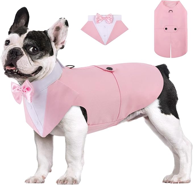AOFITEE Dog Tuxedo Formal Dog Suit and Bandana Set, Gentle Dogs Wedding Party Suit Bow Tie Shirt, Tuxedo for Small Dogs Costume Outfit with Detachable Bowtie Collar for Christmas Halloween Dress Up