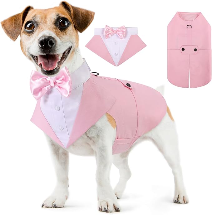AOFITEE Dog Tuxedo Formal Dog Suit and Bandana Set, Gentle Dogs Wedding Party Suit Bow Tie Shirt, Tuxedo for Small Dogs Costume Outfit with Detachable Bowtie Collar for Christmas Halloween Dress Up