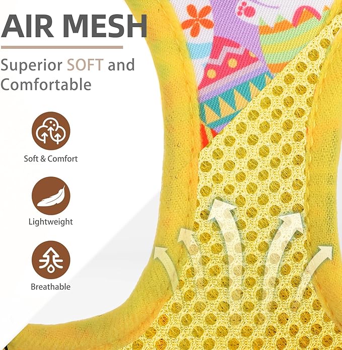 PUPTECK Dog Harness and Leash Set for Small Medium Dogs No Pull Step-in Soft Mesh Puppy Cat Vest Harnesses Reflective at Night, Easter Light Yellow, M