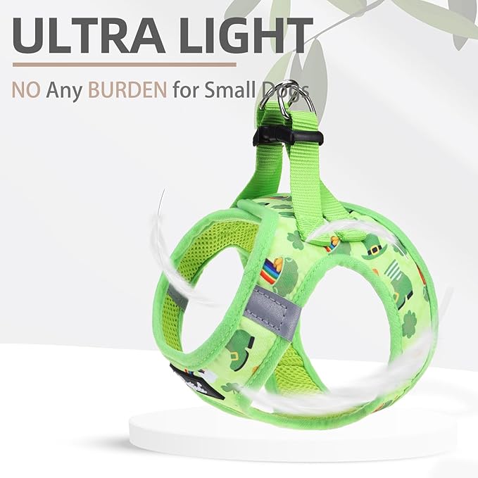 PUPTECK Dog Harness and Leash Set for Small Medium Dogs No Pull Step-in Soft Mesh Puppy Cat Vest Harnesses Reflective at Night, St. Patrick's Green, M