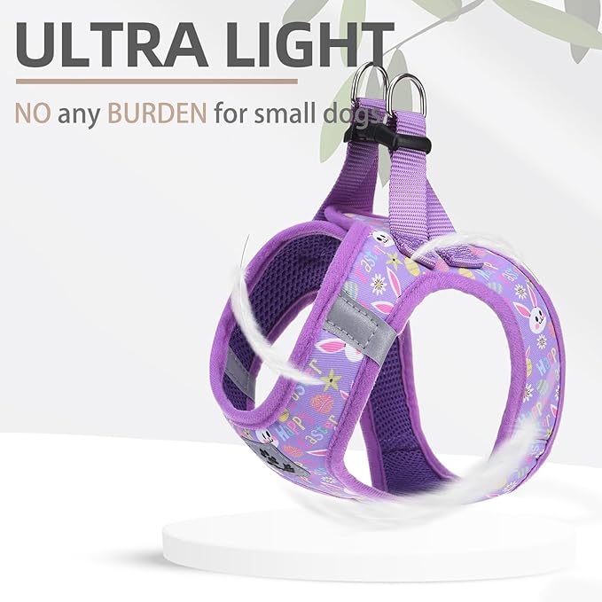 - COMFORTABLE MATERIAL, DAILY WALKING, FOUR SEASONS WEARING: - The harness is made of durable polyester, and it's adopted with an air-mesh design. The whole harness is very soft, lightweight, and breathable. Even if your dog wears it all day, he won't feel any discomfort. For daily walking or running, it is a very easy thing to do. Besides, this is a four seasons harness, it keeps the dog cool on hot days and keeps the dog warm on cold days