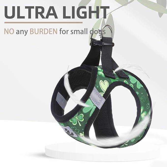 PUPTECK Adjustable Dog Harness Collar and Leash Set Step in No Pull Pet Harness for Small Medium Dogs Puppy and Cats Outdoor Walking Running, Soft Mesh Padded Reflective Vest St. Patrick's Harnesses