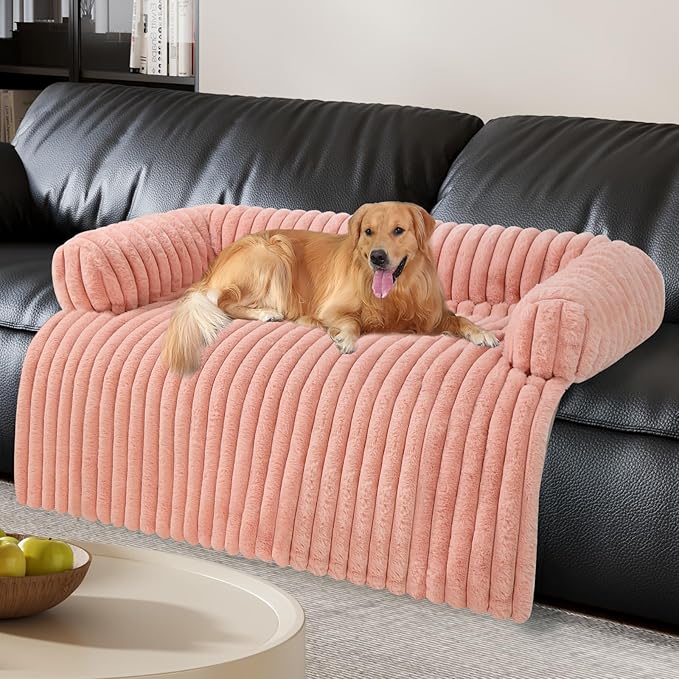 Luxurious Dog Couch Bed, Washable Calming Dog Couch Cover, Removable Couch Protector for Dogs, Waterproof Sofa Bed, Pet Bed Mats for Couch, Pet Couch Covers for Sofa(Pink, XXL)