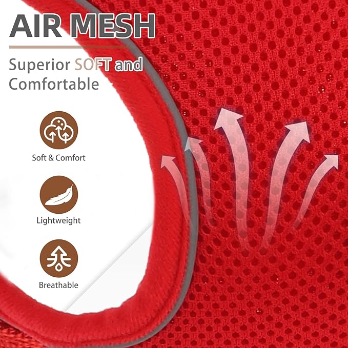 - LIGHTWEIGH AND BREATHABLE - The harness is made of quality polyester and air mesh fabric, your dog will not feel stuffy when wearing it, which keeps fur dry and comfortable. Besides, this harness is very lightweight so the dog will hardly feel the burden. Perfect for getting your furry kid dressed to go out and play