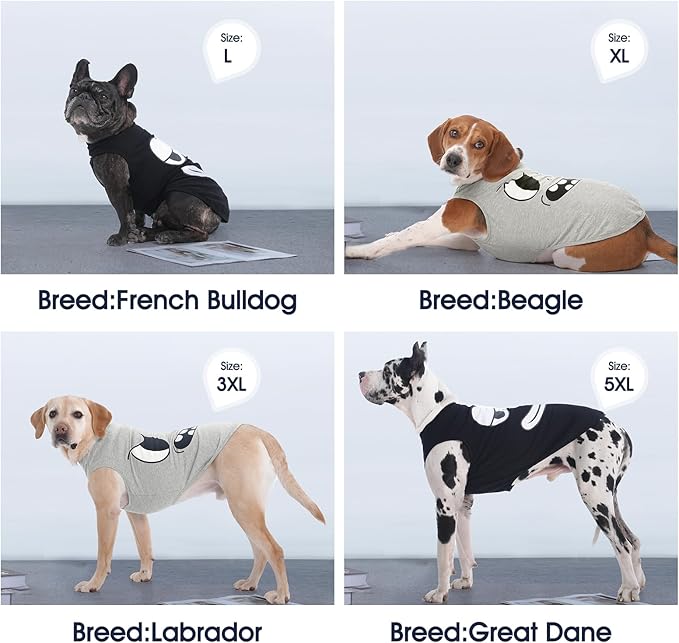- Fun & Eye-Catching Dog Tees| Printed with charming facial expressions and vibrant colors, these dog T-shirts are designed to make your pup stand out! The playful, eye-catching designs on the back ensure your furry friend is the center of attention during walks, park visits, or outdoor adventures. Not only do they keep your dog adorable and visible, but they also bring their unique personality to life. Perfect for adding a pop of fun to every outing – because your pet deserves to shine
