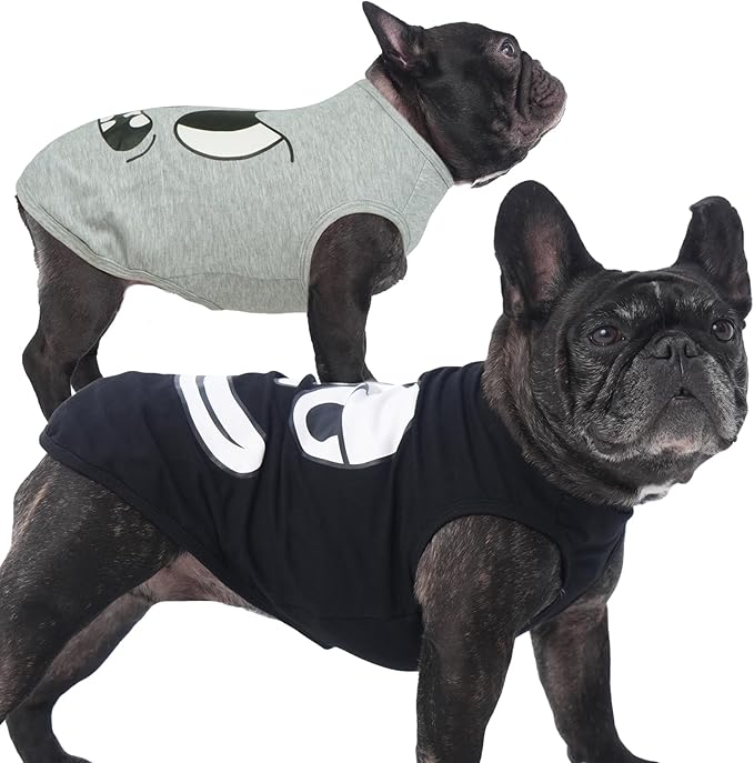 - Fun & Eye-Catching Dog Tees| Printed with charming facial expressions and vibrant colors, these dog T-shirts are designed to make your pup stand out! The playful, eye-catching designs on the back ensure your furry friend is the center of attention during walks, park visits, or outdoor adventures. Not only do they keep your dog adorable and visible, but they also bring their unique personality to life. Perfect for adding a pop of fun to every outing – because your pet deserves to shine