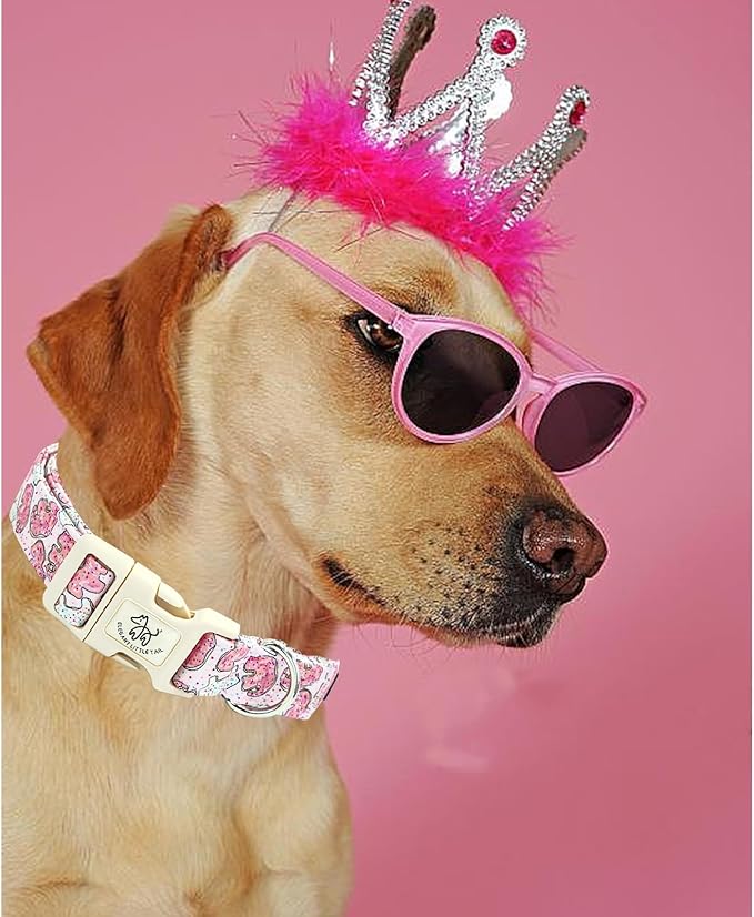 Elegant little tail Dog Collar, Elephant Cookies Pattern Pet Collar Pink Durable Holiday Female or Male Adjustable Cotton Pet Collar with Quick Release Buckle for Small Dogs