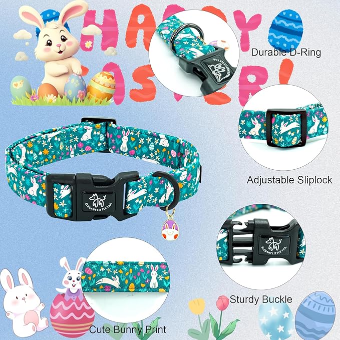 Elegant little tail Easter Dog Collar, Cute Rabbit Pattern Pet Collar Durable Holiday Girl or Boy Adjustable Cotton Pet Collar with Quick Release Buckle for Large Puppy