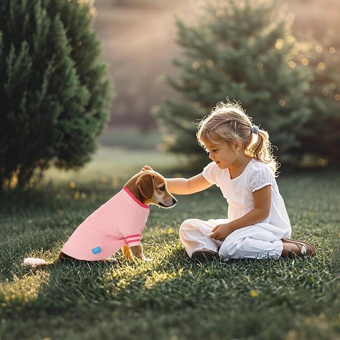 Two Tone Stacked Round Neck Pullover Dog Sweater, Pet Dog Sweaters, Knitted Dogs Clothing,Pet Clothes, Suitable for Dogs of All Seasons and Types(Pink, XL)