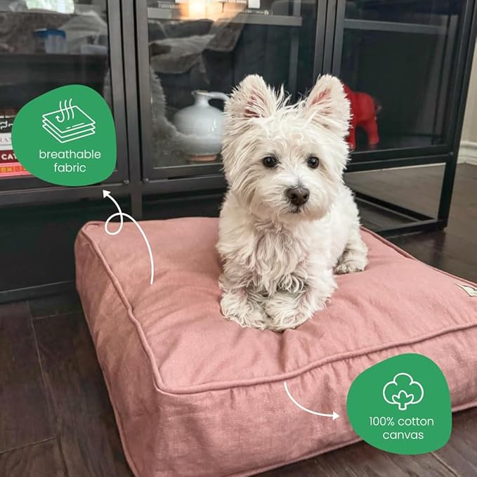 Molly Mutt Kyoto Dog Bed Duvet Cover, GOTS-Certified 100% Organic Cotton Canvas Cover for Dog, Puppy, or Cat Bed, Durable, Washable, and Free of Harmful Chemicals, Small, 22"x27"x5", Dusty Pink