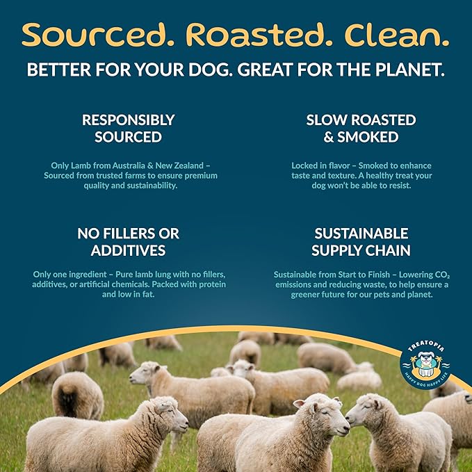 Lamb Lung Bites Dog Treats, 1 LB Bag - All-Natural, Sustainable, Healthy, High Protein, Hand-Trimmed, Slow-Roasted, Made in The USA, Nutritious, No Additives, No Fillers