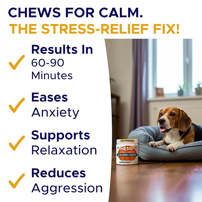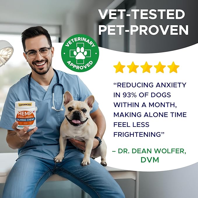 - Natural Remedy for Anxious Dogs: Our dog calming chews anxiety relief treats provide a hemp-based remedy to help dogs relax. These edible soft chews work to reduce stress.