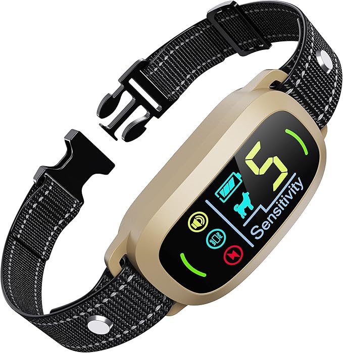 Dog Bark Collar for Large Medium Small Dogs, Rechargeable Smart Bark Collar, Anti Barking Training Collar with 5 Adjustable Sensitivity Beep Vibration (Gold)