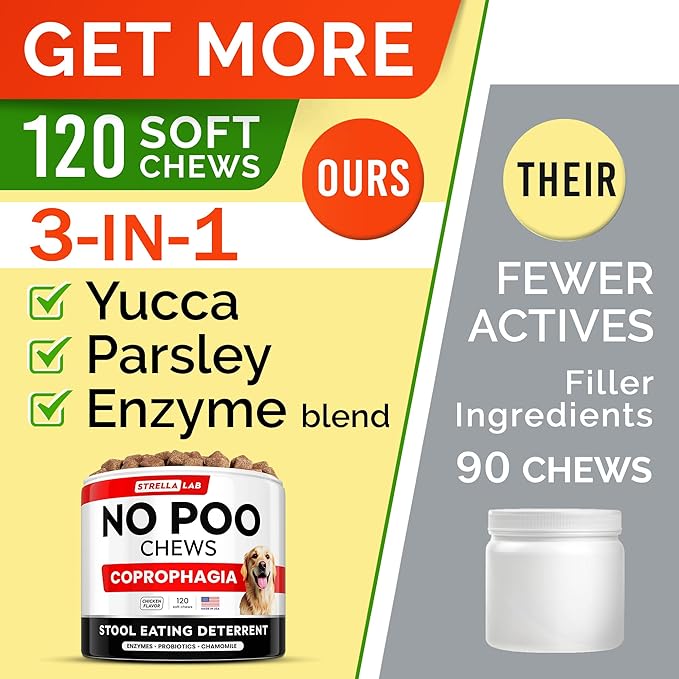 STRELLALAB No Poo Chews for Dogs - Coprophagia & Stool Eating Deterrent with Probiotics, Digestive Enzymes & Breath Aid Support - Stop Dog Poop Eating - Made in The USA