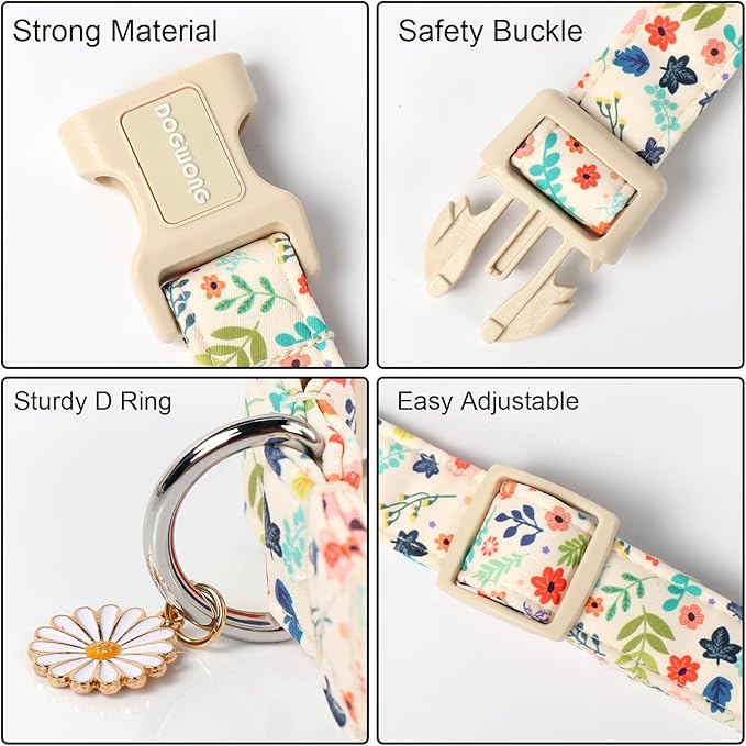 DOGWONG Spring Summer Floral Cotton Dog Collar, Pink Flower Dog Collar Durable Soft Fabric Pet Dog Collars Cute Girl Female Puppy Necklace for Small Medium Large Dogs