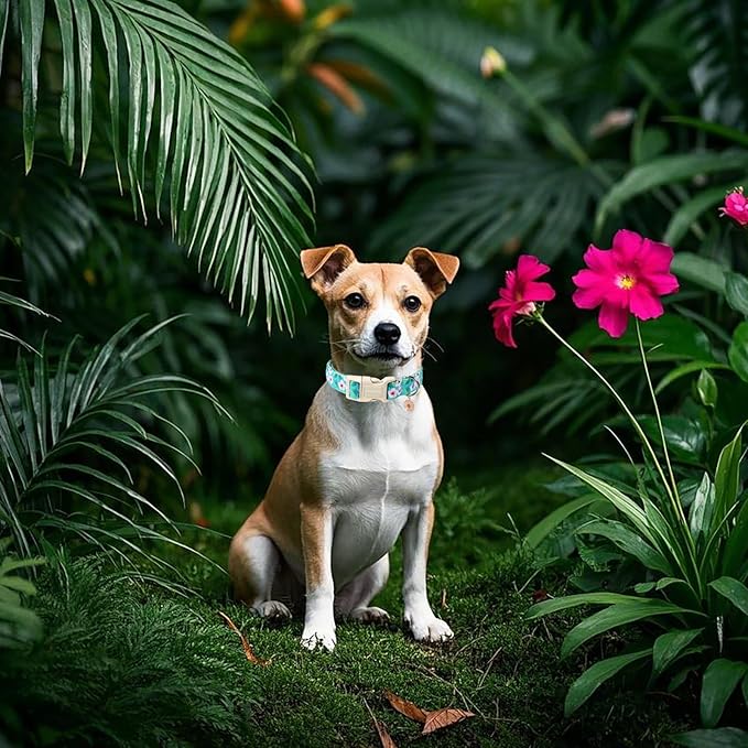 - [UNIQUE DESIGN] Our dog collars are crafted with precision and care, ensuring the highest level of quality. Featuring a sturdy plastic buckle that is both stylish and long-lasting, our collars make it easy to quickly put on and take off. With an adjustable roll buckle and a convenient D-ring, these collars are perfect for small ans medium dog and come complete with a spot for attaching a dog tag or leash.