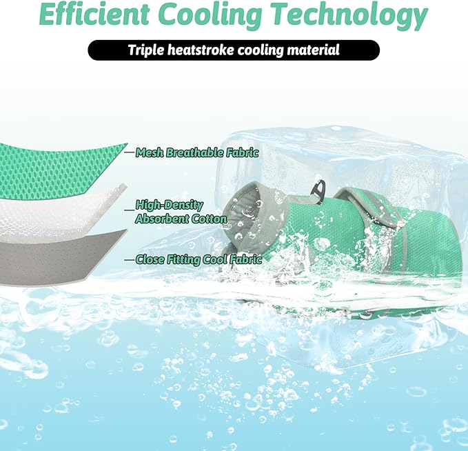 - ADJUSTABLE TO WEAR: The summer dog cooling shirt for dogs features an adjustable buckle design at the neck and an adjustable HOOK & LOOPS on the chest for better fit but does not restrict the dog's movement or mobility, easy to wear. The doggy cooling vest features a D-shaped buckle design that can be paired with a drawstring, suitable for outdoor activities such as outdoor walking, hiking, camping, and beach parties
