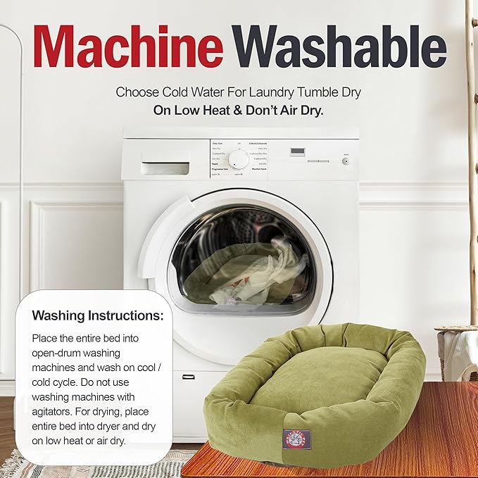 Majestic Pet 40 Inch Micro Velvet Calming Dog Bed Washable 40x29x9 (inch) – Cozy Soft Round Donut Dog Bed with Spine for Head Support - Pet Bed Large – Apple (2025)