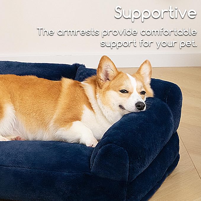 - 【Extra Comfort】Designed for pets who love to curl up, this pet sofa features raised edges that provide a sense of security and support for your pet's head and neck. It offers ultimate comfort and security, promoting a restful sleep for your furry companion