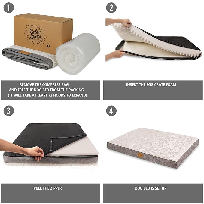 - Care Instructions: The removable cover of the dog bed is machine washable; simply machine wash and tumble dry; please note that the egg crate foam is not washable; as the foam is compressed it will take about seventy-two hours to expand