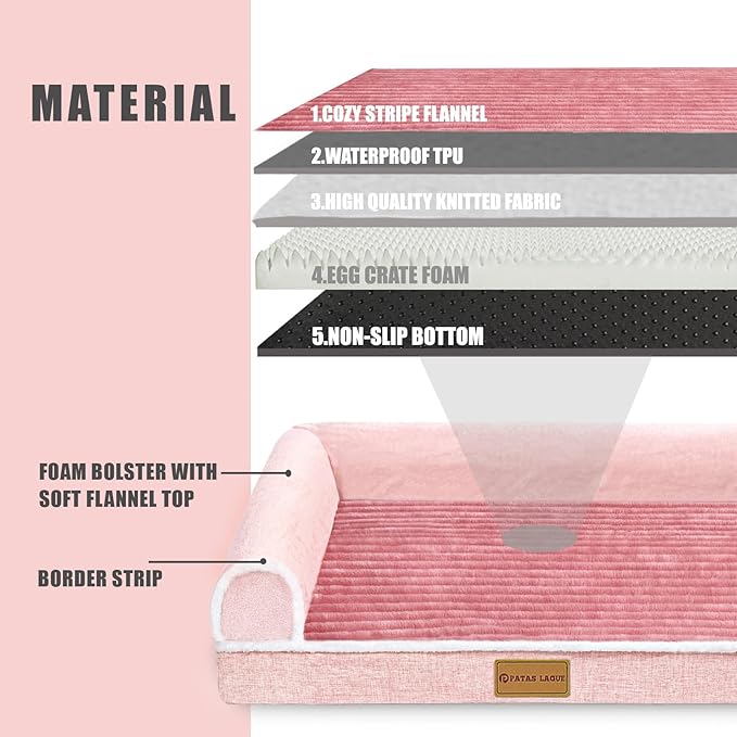 Patas Lague Orthopedic Dog Bed for Large Dogs Waterproof Comfortable L Shaped Medium Non-Slip Soft Warm Pet Sofa Sleep Bed mat with Removable Washable Cover 36''X24'' Pink