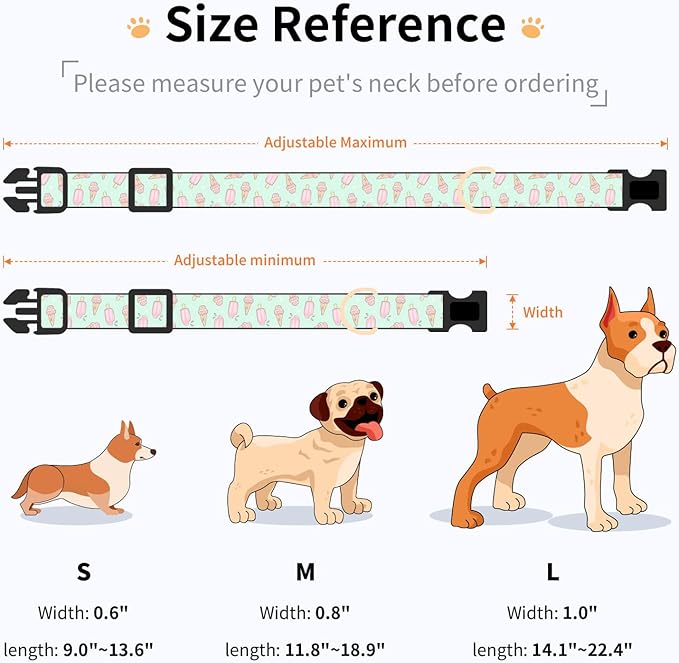 Cotton Dog Collar,Adjustable Cute Puppy Collar with Moon Patterned Design for Small Medium Large Dogs,Soft and Fancy Pet Collar with Safety Buckle for Girl Boy Dogs (Green Ice Cream, L)