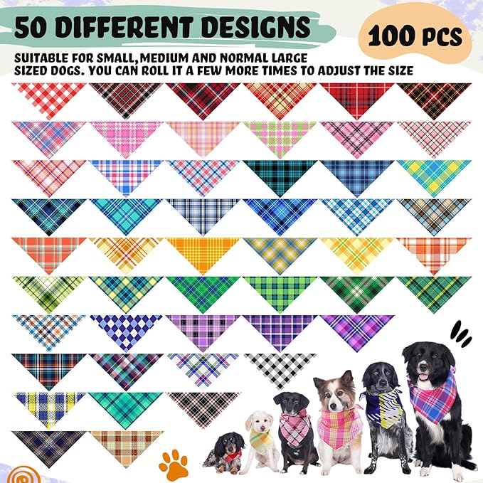 - 100 Pcs Set: you will get 100 pieces of plaid dog bandanas in 50 diverse styles, sufficient quantities and rich styles to meet your different needs, good for dog owners, dog lovers and dog groomers