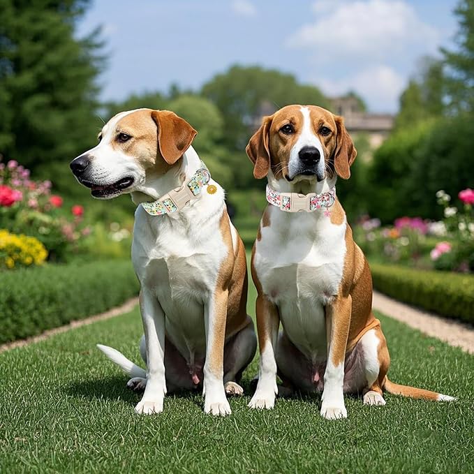DOGWONG Flower Cotton Dog Collar, Spring Summer Cute Pink Dog Collar Durable Soft Fabric Pet Dog Collars Female Girl Necklace for Small Medium Large Dogs