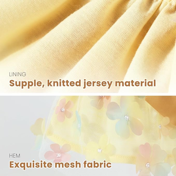 - The pink dress makes your little princess more charming, cute, and elegant, with a three-dimensional flower cut pattern to enhance the overall beauty. The tail is cut higher, making it easier to use the restroom, and the pullover design is easy to put on and off.