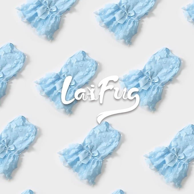 Laifug Dog Dress Puppy Print Princess Dog Dress Cute Party Wear (Blue, M)