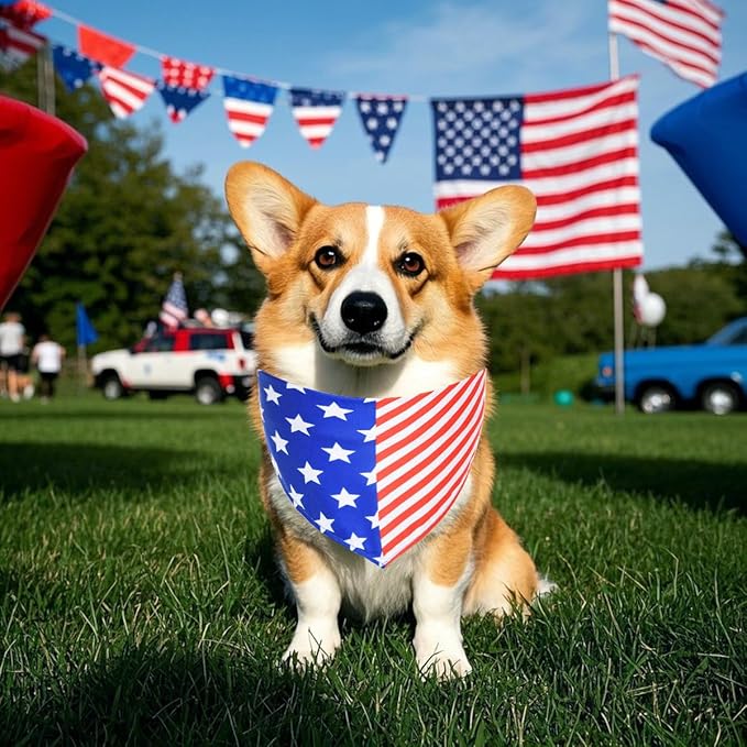 - Fouth of July Dog Bandanas Size:The size is approx 65*45cm*45cm/25*17*17inches, fits for small medium dogs,please measure the neckline of your cutie and leave room to tie knot