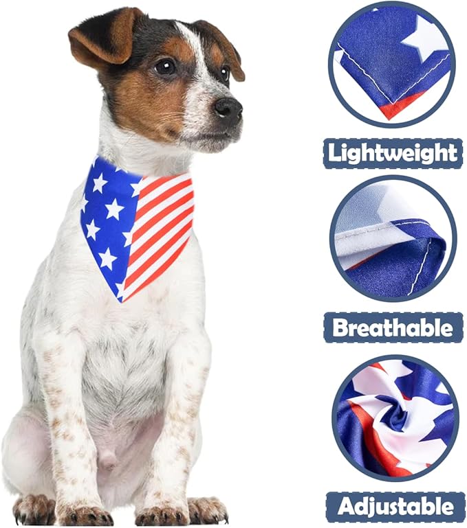 - Patriotic Dog Bandanas Material:These dogs bandanas scarves are made of 100% durable polyester, machine wash and dry available.It is soft and comfortable, giving pets a better wearing experience