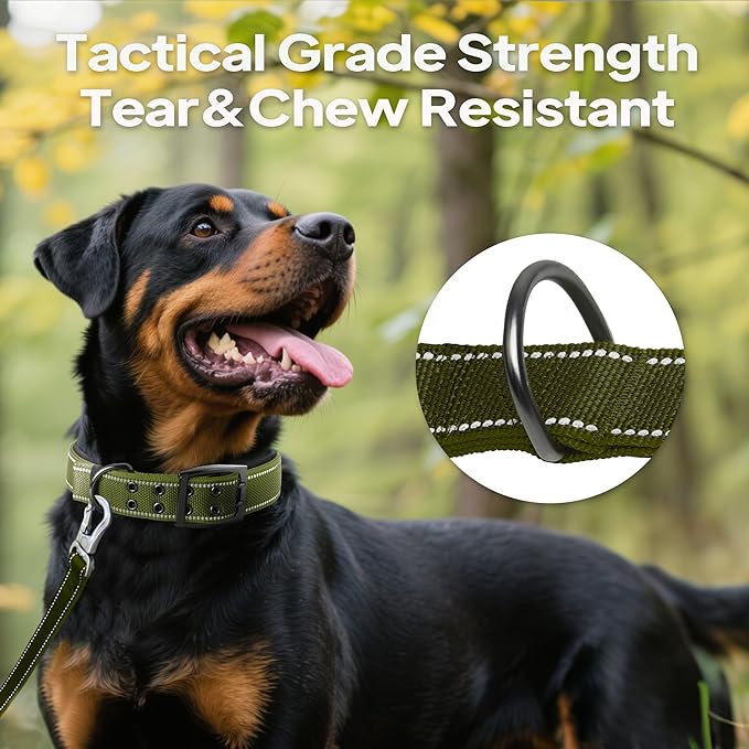 PetiFine Dog Collar for Extra Large Dogs, Neoprene Padded and Adjustable, Reflective Wide Heavy Duty Pet Collars with Durable Metal Belt Buckle for Walking, Green, XL