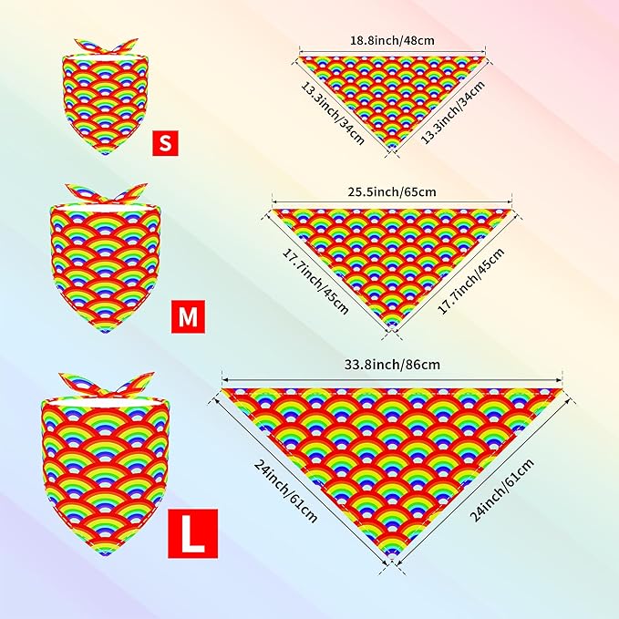 - Pride Month dog bandanas size:About 25.5 x 17.7 x 17.7 inch, suitable for most small medium large dogs and cats doggies puppies kittens rabbits pets,please measure the size of your cutie and leave room to tie knot