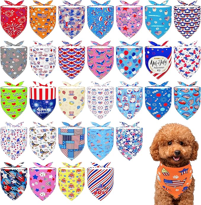 30 Pack 4th of July Dog Bandanas Bulk for Small Dogs Kittens Breed 18 Inch Patriotic Dog Bandanas XS Puppy Doggy Independence Day Dogs Bandana Grooming S