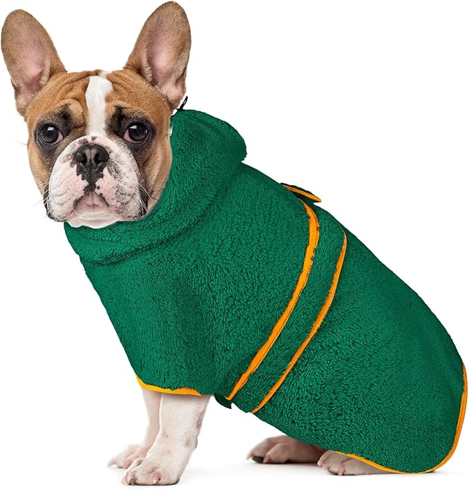 Bienbee Soft Dog Bathrobe,Super Absorbent & Quick-Drying Dog Robe with Hood, Cozy Drying Coat for After Bath, Green S