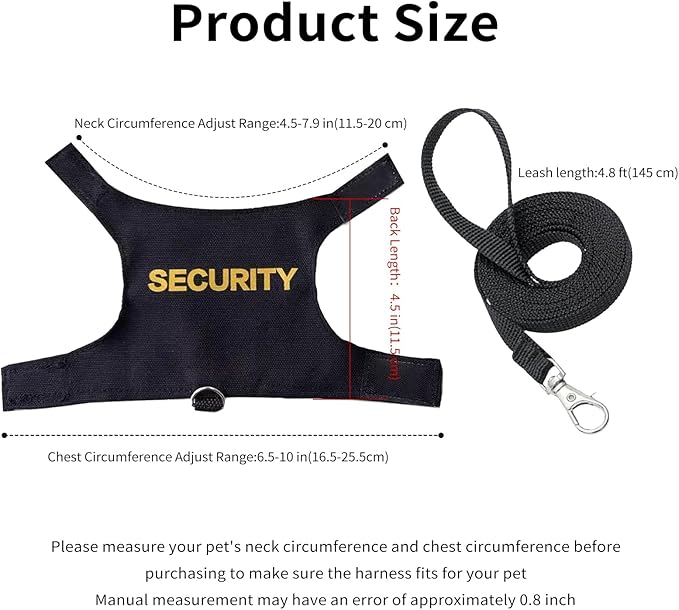 - 【Cool Design】The back of the bearded dragon clothes is printed with the word'SECURITY'in gold which is fashionable and eye-catching