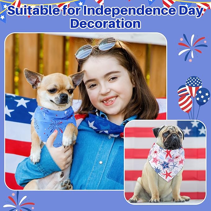 - Versatile for Various Occasions: these 4th of July pet bandanas are ideal for Independence Day celebrations, parades, barbecues, or family gatherings; They're also nice for pet daycare centers, grooming salons, or as gifts for fellow pet owners; With a mix of flag and patriotic designs, your pet will stand out at any patriotic event or holiday party