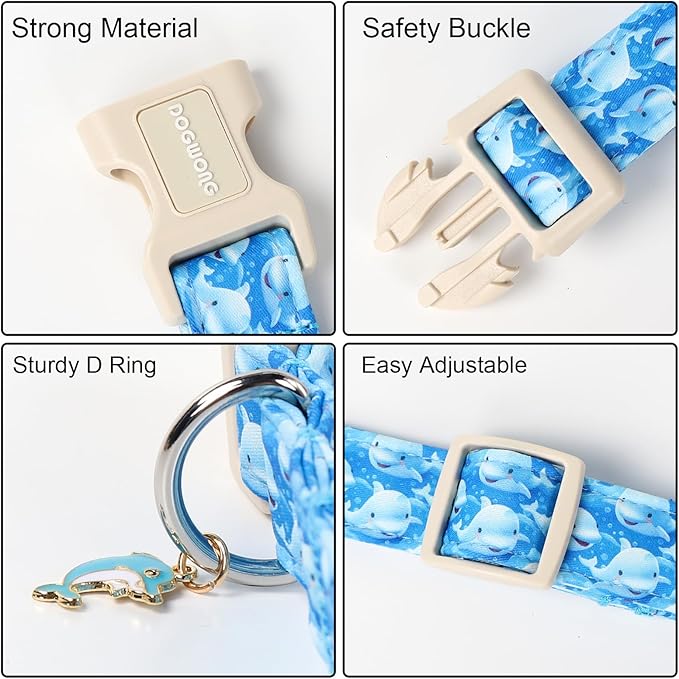 DOGWONG Whale Cotton Dog Collar, Summer Cute Shark Dog Collar Durable Soft Fabric Male Pet Dog Collars Boy Puppy Necklace for Small Medium Large Dogs