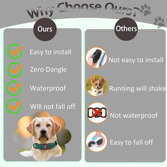 - 【Waterproof Design】The 360°coverage design can completely wrap around the airtag, with strong waterproof function, preventing damage to the airtag when pets splash water, and will not block the airtag signal. This can provide maximum protection for dogs who like to swim.