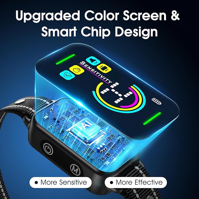 - 2025 Upgraded AI Technology, No More False Triggering:DINJOO smart bark collar for small dogs adopts advanced AI smart dog bark recognition chip and motion detection technology. At 1-7 sensitivity, it is only activated when both motion and barking are detected. At 8 sensitivity, it is activated when the dog's barking is detected. This technology safely and effectively filters other dogs' barking, 100% preventing false triggering and protecting your dog from unnecessary punishment