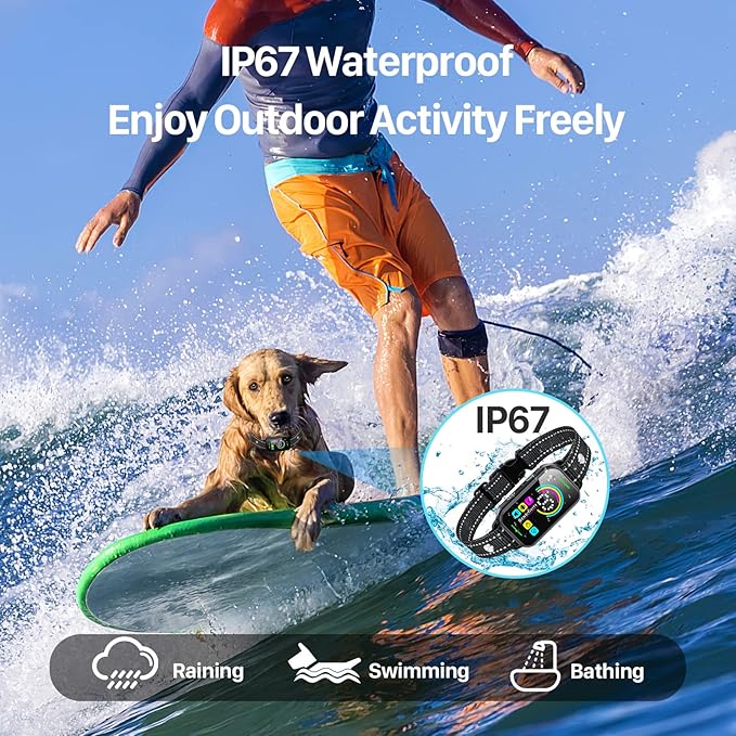 - Comfortable for all sizes of Dogs: DINJOO No Barking collar measures 27 inches. This small dog bark collar strap, made of skin-friendly and comfortable soft nylon, fits dogs over 8-120lbs with neck sizes 6-27 inches.DINJOO dog bark collar for large dogs, medium dogs,small dogs. With IP67 waterproof, your dogs will enjoy bathing, swimming, chasing toys around a pool or playing in the rain