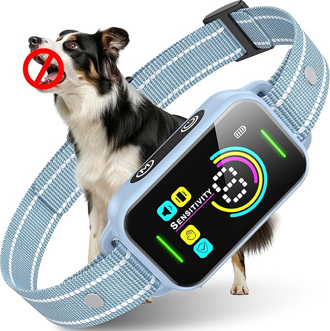 DINJOO Dog Bark Collar for Large Medium Small Dogs,Smart Bark Collar,Rechargeable Anti Barking Training Collar with 8 Adjustable Sensitivity,Bark Collar with Beep (Sky Blue)