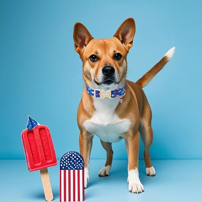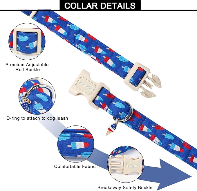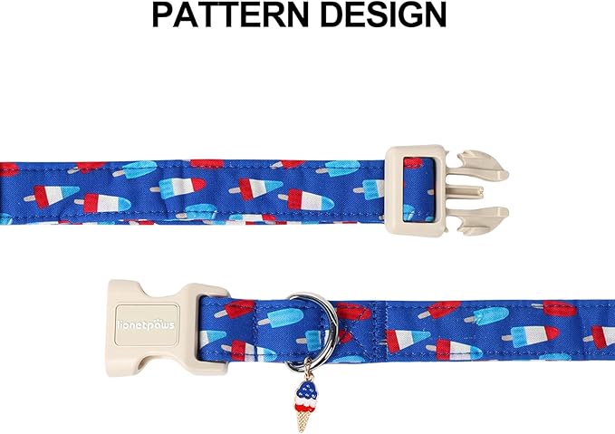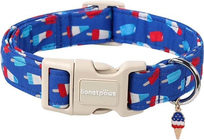 Lionet Paws 4th of July Dog Collar- Cute Blue Red Popsicle Dog Collars with Plastic Buckle and Icecream Pendant, Light Adjustable Dog Collars for Small Medium Dogs