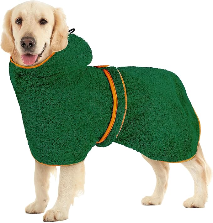 Bienbee Soft Dog Bathrobe,Super Absorbent & Quick-Drying Dog Robe with Hood, Cozy Drying Coat for After Bath, Green L