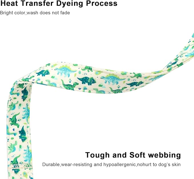 Lionet Paws Green and Blue Dinosaur Dog Collar- Cute Stegosaurus and Raptor Beige Dog Collars with Plastic Buckle,Light Adjustable Dog Collars for Small Dogs