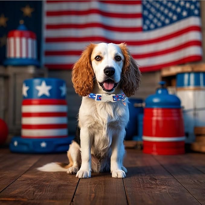 Lionet Paws 4th of July Dog Collar- Cute Blue Red Popsicle Dog Collars with Plastic Buckle and Icecream Pendant, Light Adjustable Dog Collars for Medium Dogs