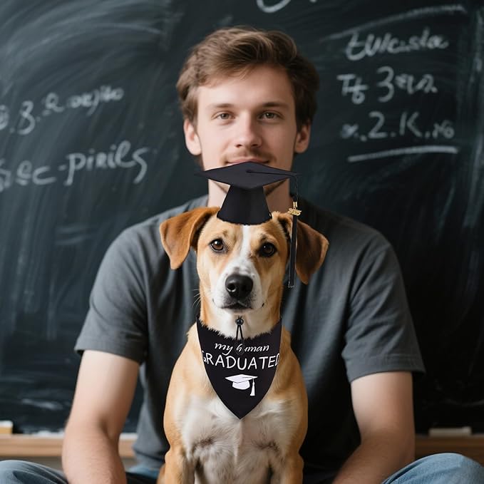 PUPTECK Dog Graduation Bandana Outfit Scarf with Cute Doggy Cap, Costume Decorations Supplies for Small Medium Large Dogs Boy Girl Gifts, Black